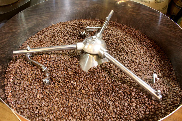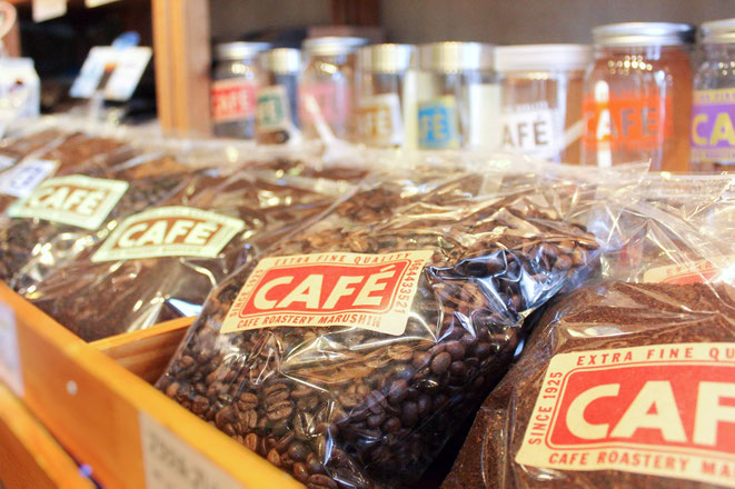 コーヒー専門店カフェロースタリーマルシン。「いつもおいしいコーヒーを」をモットーに、高品質の生豆を毎日丁寧に焙煎しています。工場と売り場が1つになったようなお店です。当店自慢の大きな直火焙煎機にて、時には200℃以上の高温で力強く焼き上げるコーヒーの新鮮な香りと深い味を、是非一度体験してみてください。