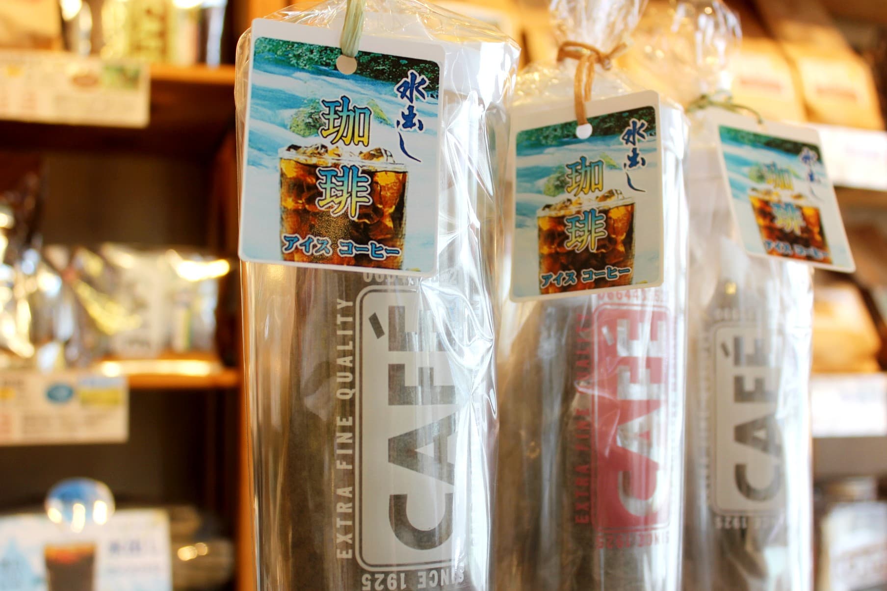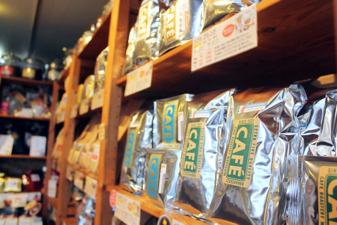 店頭にはさまざまな産地のコーヒーや用途に合わせたブレンドコーヒーを揃えています。ひとつひとつの商品に、コーヒーの煎り具合、特徴や味わいを記載してご紹介しています。「この銘柄はどんな味わいかな?」「次はこのコーヒーを飲んでみよう!」と、見ているだけでワクワクしていただけるような、たくさんのコーヒーをご用意しております。