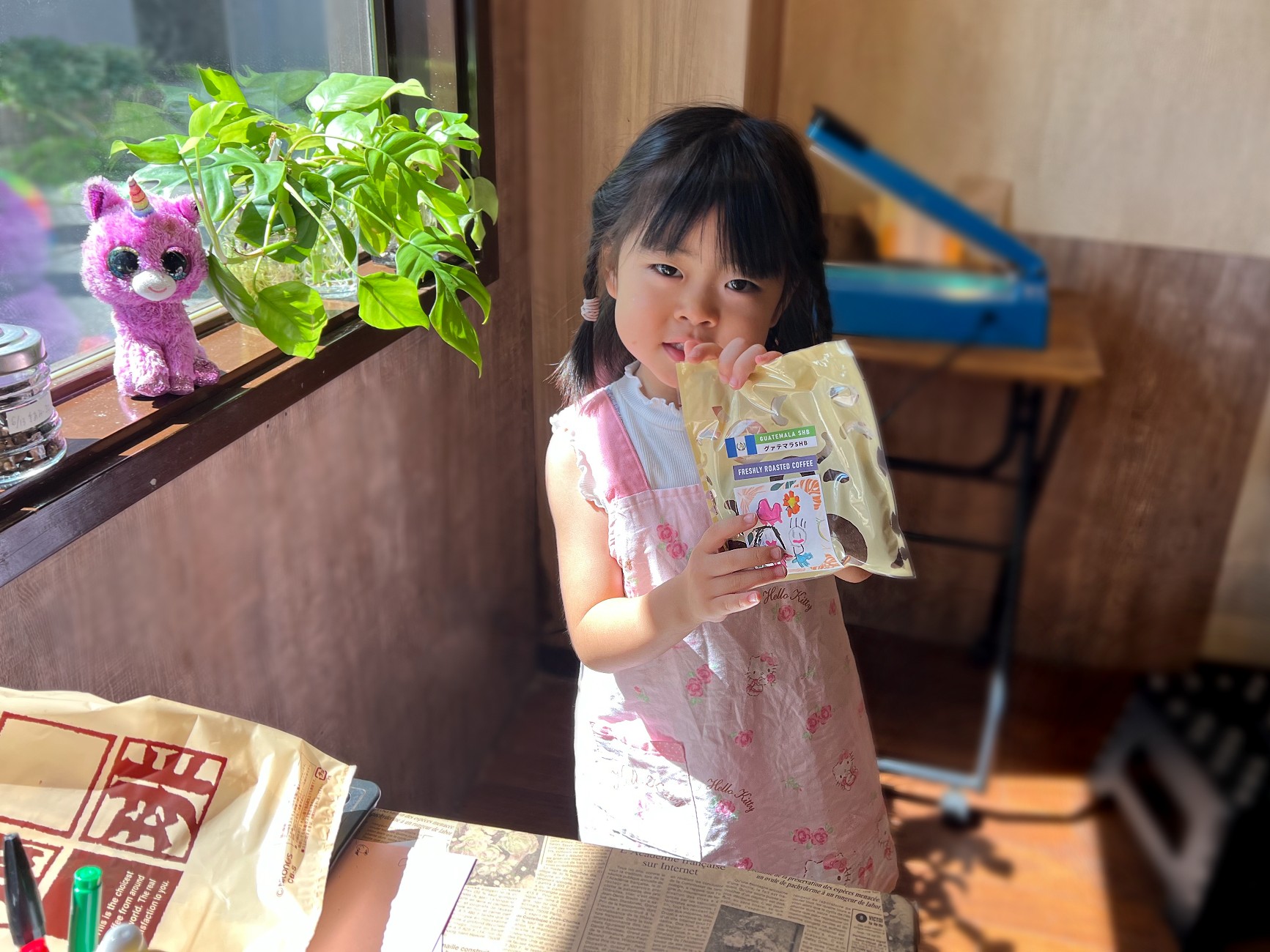 ママと5歳のお客様にお楽しみいただいたこの会では、コーヒーの品種/銘柄の味をしっかり味わえるよう、グアテマラ100%で焙煎しました。アイスコーヒーとして美味しくなるよう、深煎りを目指しじっくり焙煎し、香り高いコーヒーができました✨