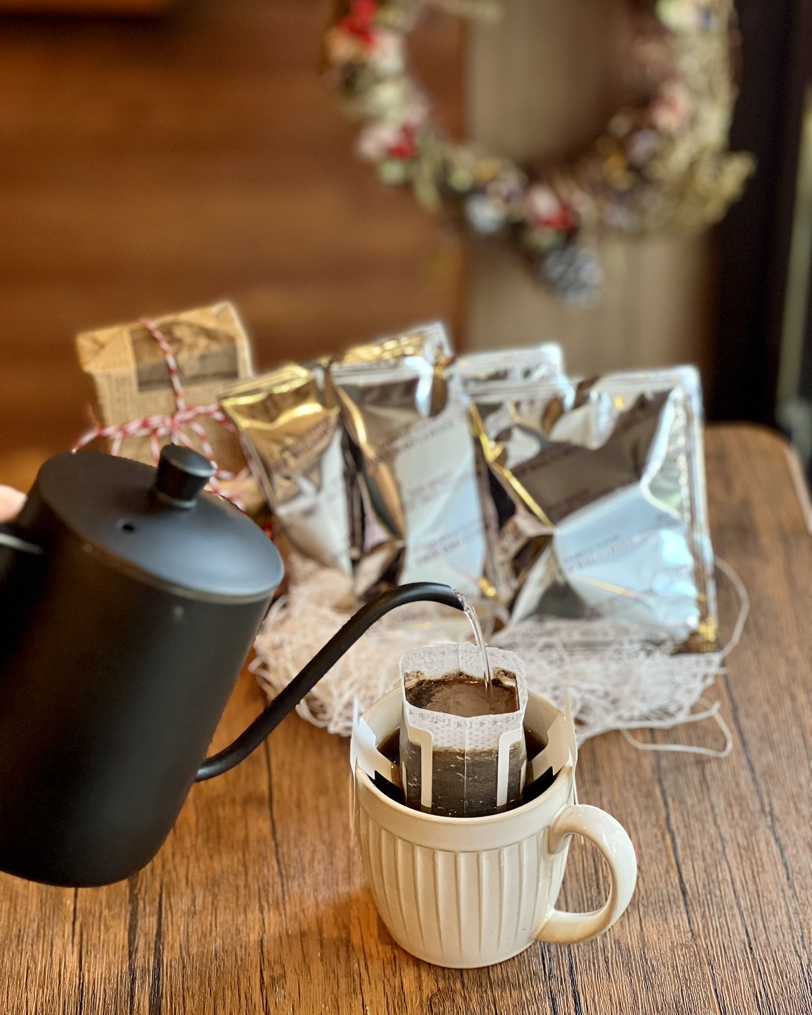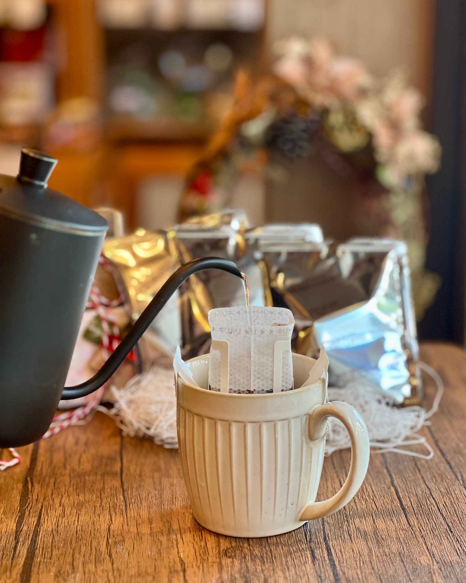 当店の自家焙煎オリジナルドリップコーヒーは、高品質の生豆を厳選し丁寧にじっくり焙煎したコーヒー豆を、直ぐにドリップバックコーヒーとして充填加工しています。